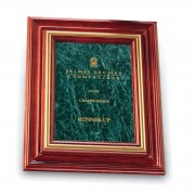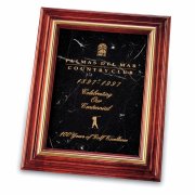 Culture, elegance, and an atmosphere of superiority are immediately evident when the beauty, grance and charm of these magnificent plaques are showcased. Blending exquisite black or green marble, brass accents, and solid cherry wood into a perfect marriage of media. Ancient, natural marble truly makes a statement with unerringly good taste.