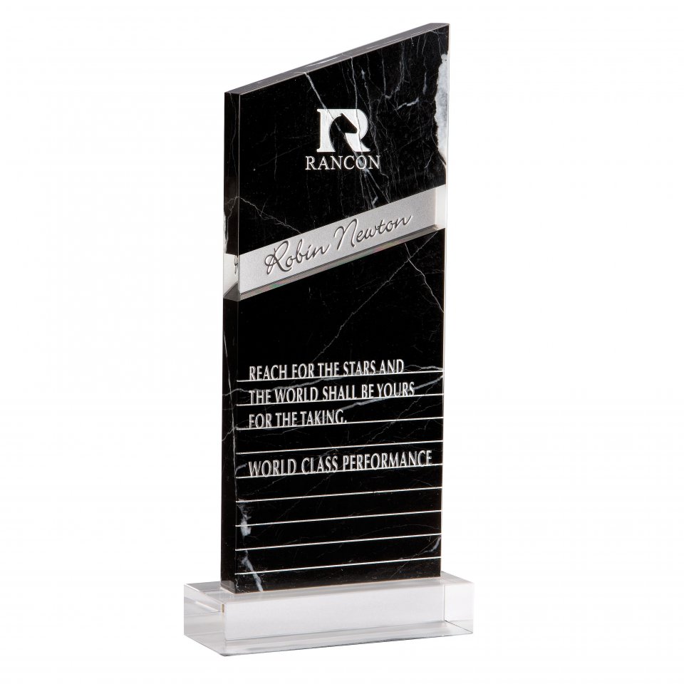 Exceptional effort is most deserving of an exceptional inspired design. Quarry's unique Foray award is available in three marble colors, and your choice of color-fill. Select this exciting award for your best people. They deserve one.