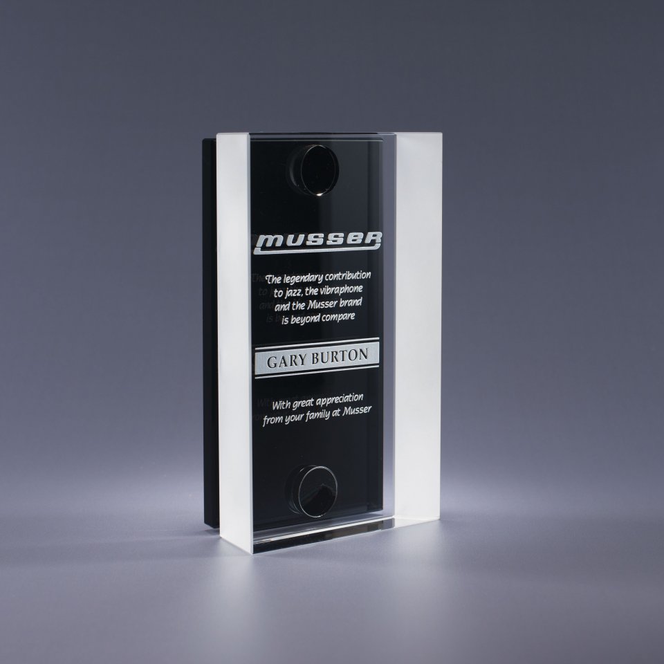 Let there be color! Add fair and your corporate color with our Panache Award. The back panel is available in blue, red or black for depth and contrast that will make your logo and message pop. All components are made of hefty optic crystal.