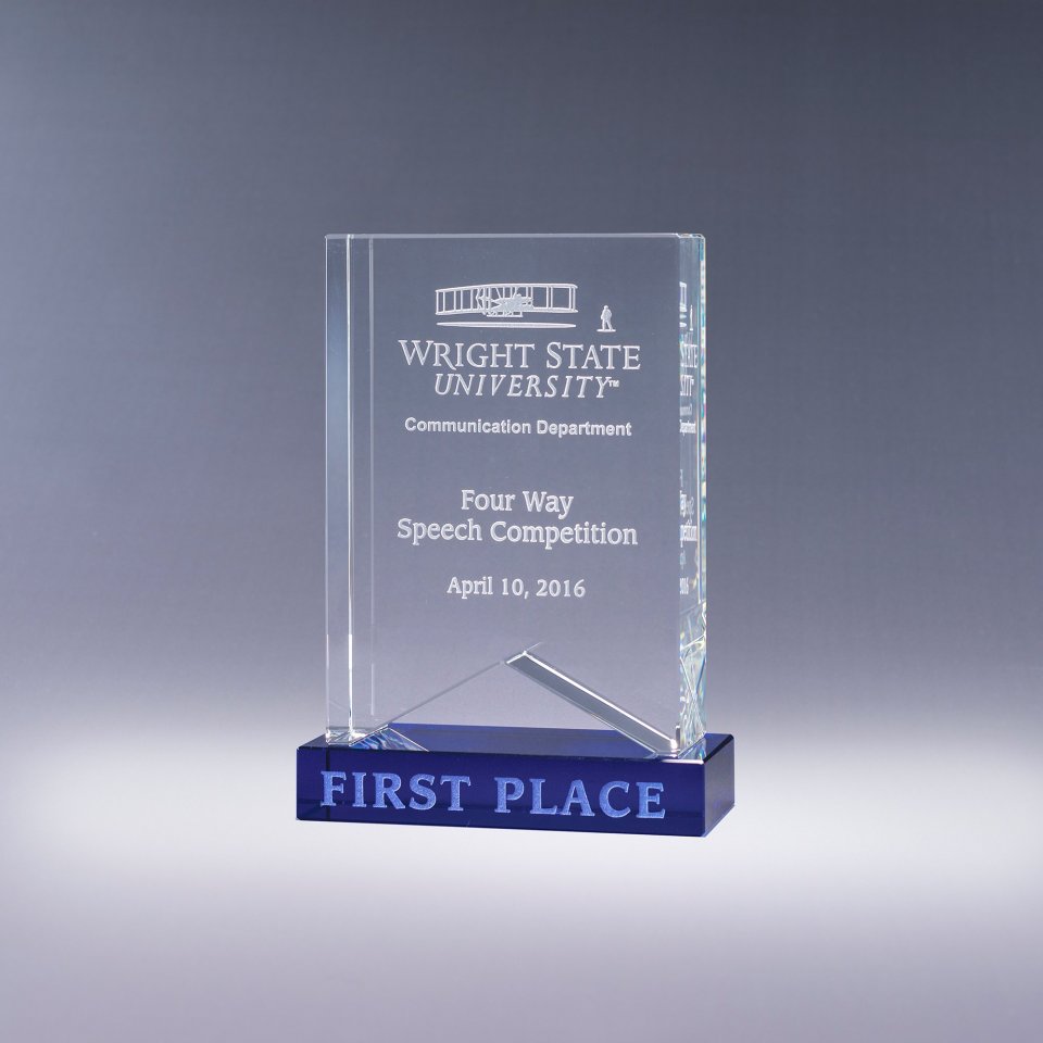 Just one look says it all! Reward them with our hefty Crystal Ribbon and the world will know a job was well-done. Made of thick optic crystal, choose the clear base or add a splash of color with blue or red. Another J.Charles original.