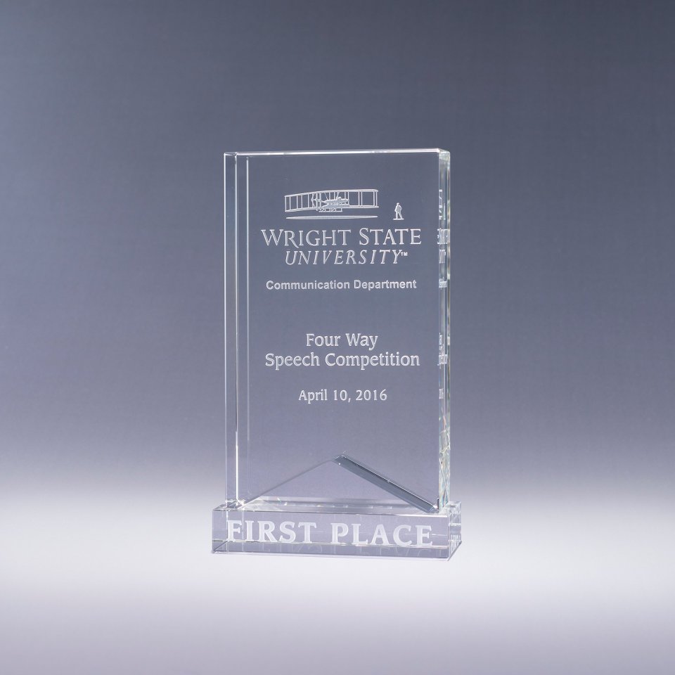 Just one look says it all! Reward them with our hefty Crystal Ribbon and the world will know a job was well-done. Made of thick optic crystal, choose the clear base or add a splash of color with blue or red. Another J.Charles original.
