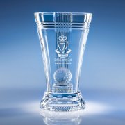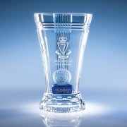 The designers at J.Charles give you a classic look that's guaranteed to endure its way into the future. Made from full-lead crystal, this award features elegant hand-cutting that is symmetrical and timeless. Clear, blue or green, golf theme or no golf theme - whatever you choose will make for a colorful event. Price includes colorfill as shown. California residents please see Proposition 65 in our general information, page 193