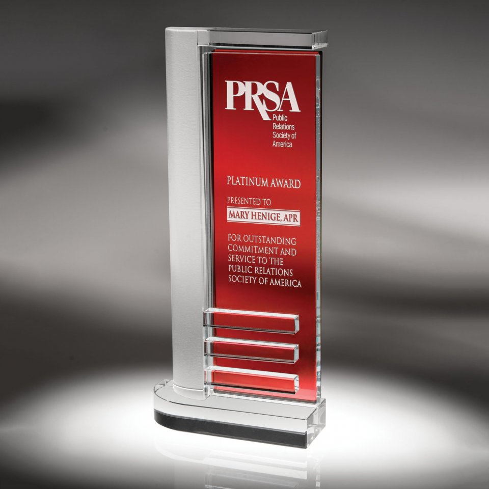 Experience the color of success with our very stunning Synthesis Award. This large-scale design features a colored optic background for giving emphasis to your inscription. Choose blue, green, amber or red. Please specify color when ordering. Another J.Charles original!