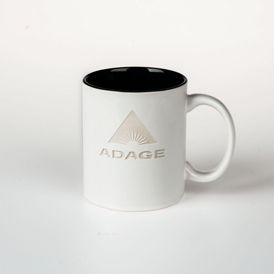 A new look for the traditional ceramic mug. All white exterior with black interior.